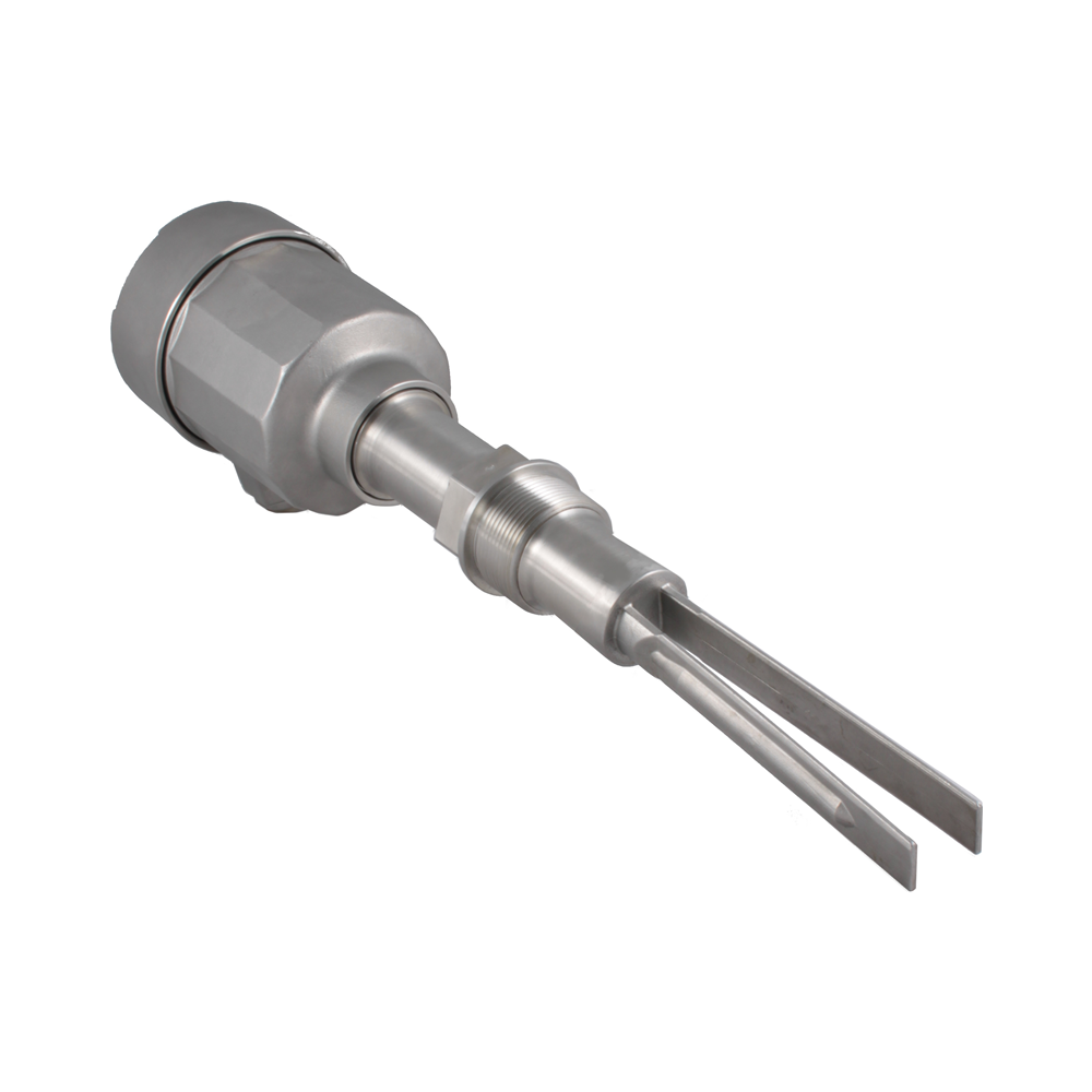Лопасти датчика вибрируют на механической резонансной частоте под действием пьезоэлектрического воздействия. При контакте лопастей с контролируемым продуктом колебания затухают (изменяется амплитуда), что регистрируется электроникой, и формируется выходной сигнал. При освобождении от продукта лопасти снова начинают вибрировать, что также регистрируется электроникой.